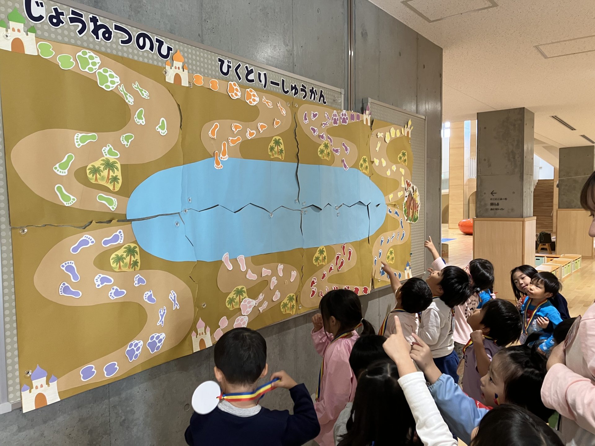 オアシスにたどり着くための地図を取り戻すため、太陽の子たちはさばくの国の王女さまたちを助けたいとの思いで、ビクトリー週間で頑張りたい目標を各クラスで決めて取り組みました。