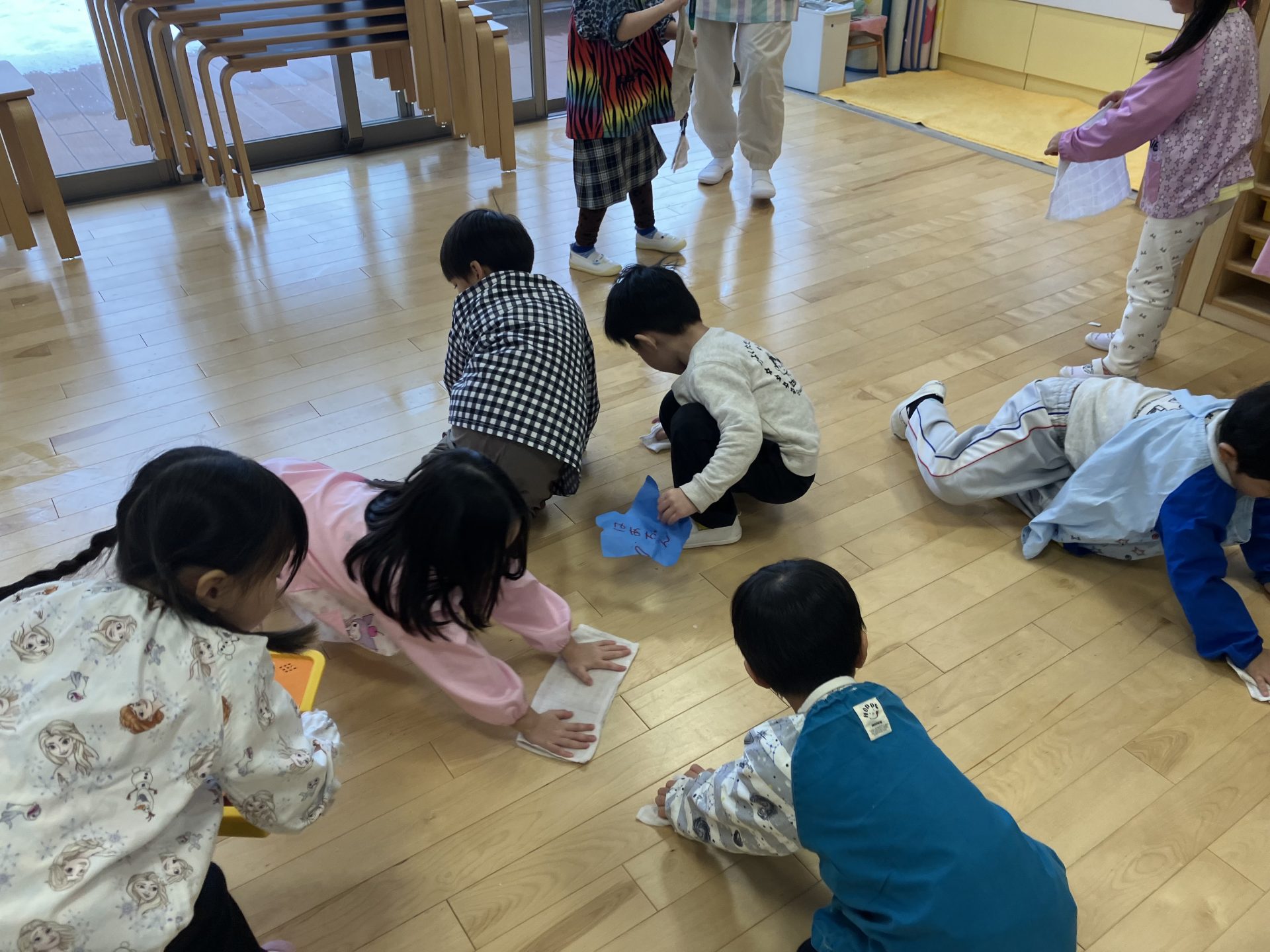 終業式の後は、年末の大掃除「ピカピカデー」を全学年で行い、たくさん遊んだ幼稚園に「ありがとう」の気持ちを込めて一生懸命綺麗にしました。雑巾を持ち、張り切ってお部屋の床や自分のロッカーの中などをお掃除する子どもたちの姿がたくさん見られました^^